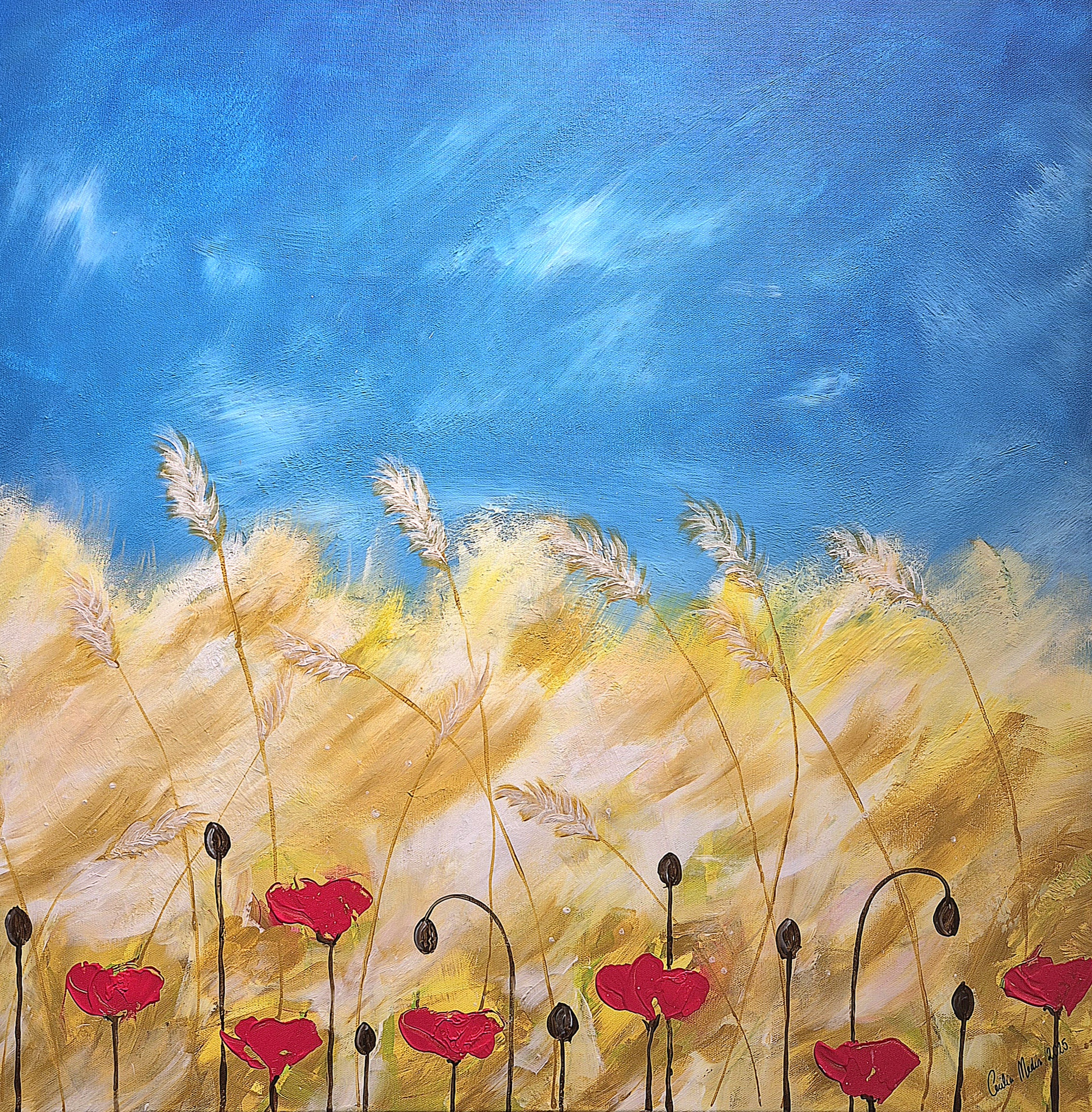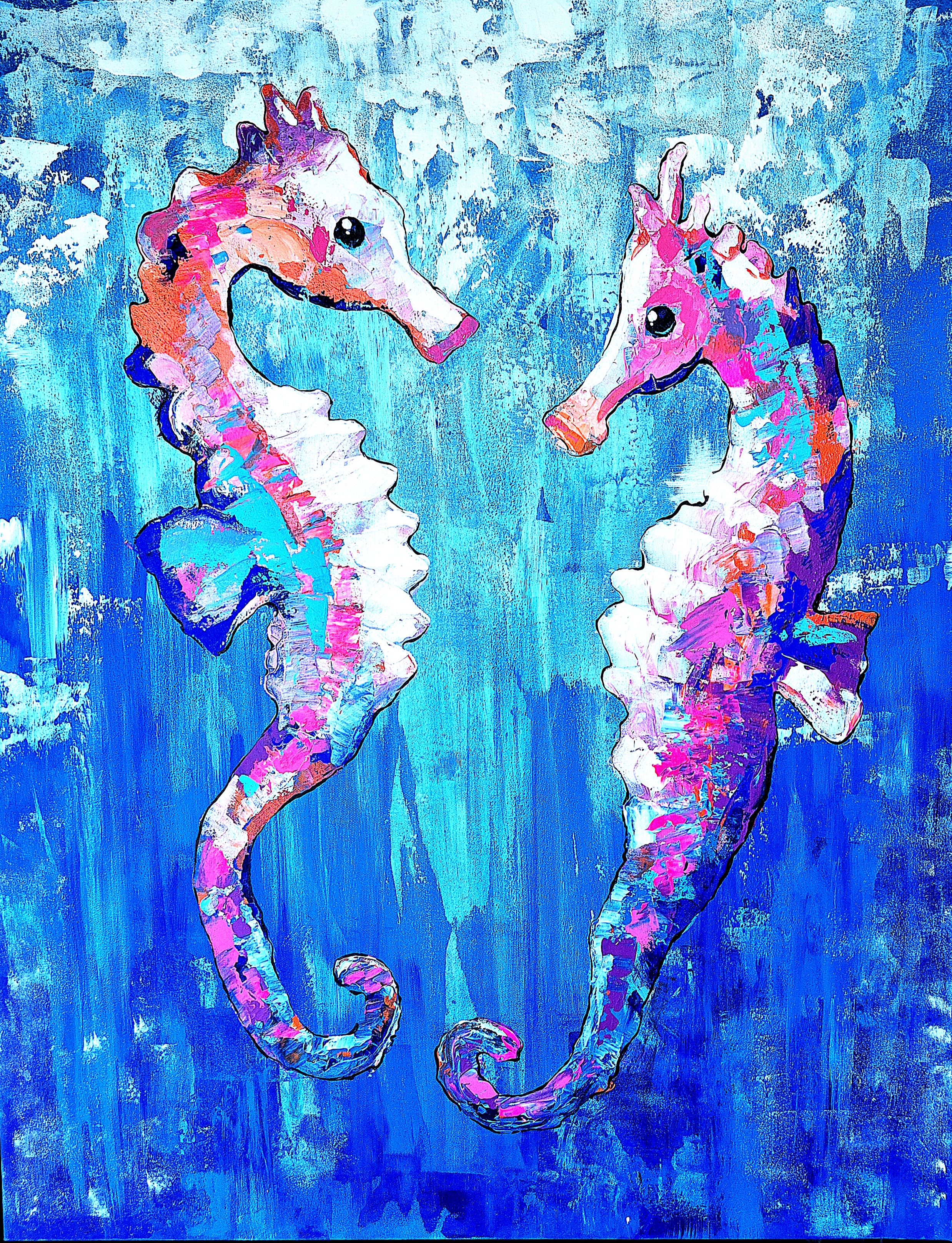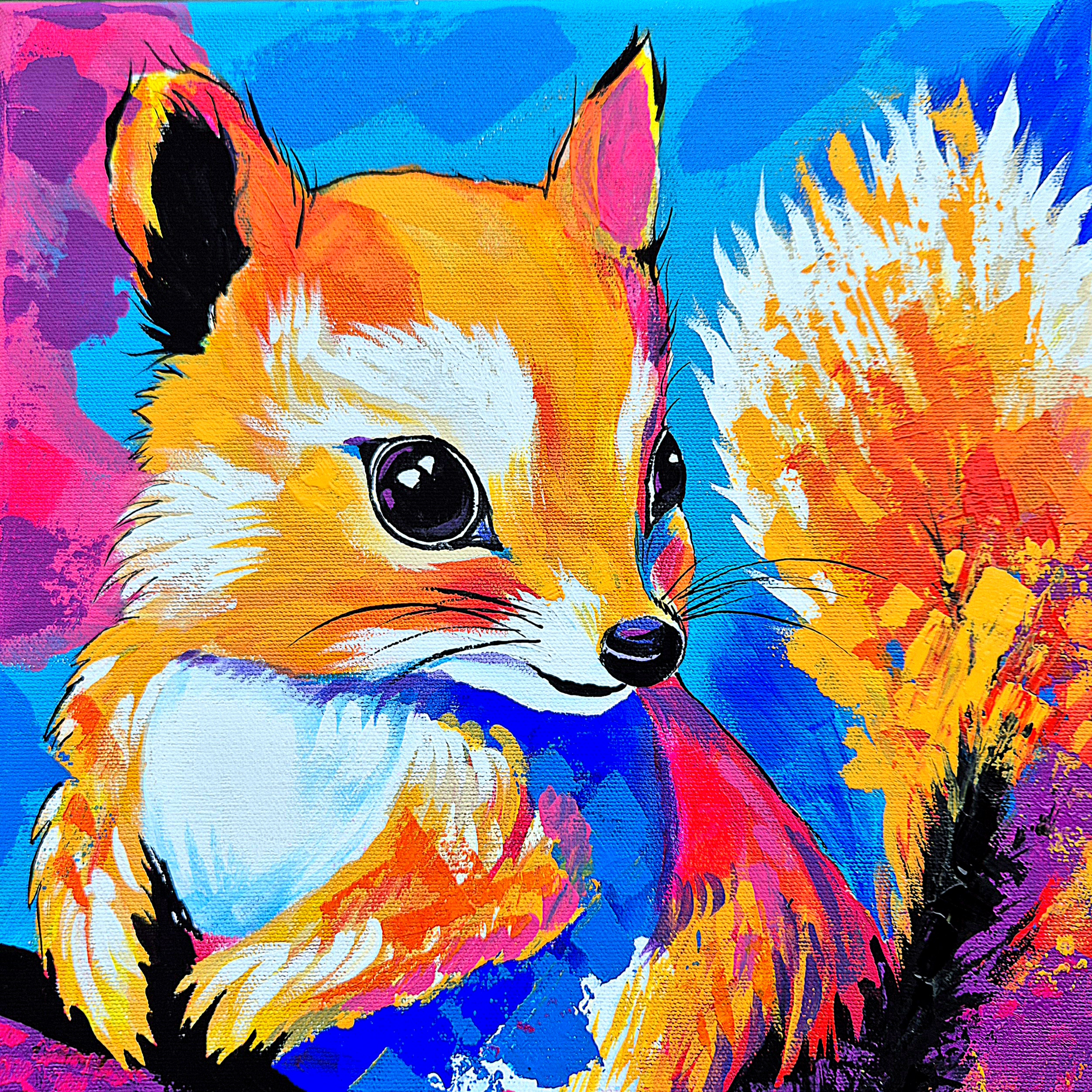 Akryl kan vara roligt eftersom färgen torkar så fort, det går fort att jobba med lager på lager och motiven blir ofta färgstarka. Jag använder en mix av akrylfärg och alltid en skyddande varnish ovanpå som gör att färgerna skyddas med tiden och behåller sin färgintensitet.